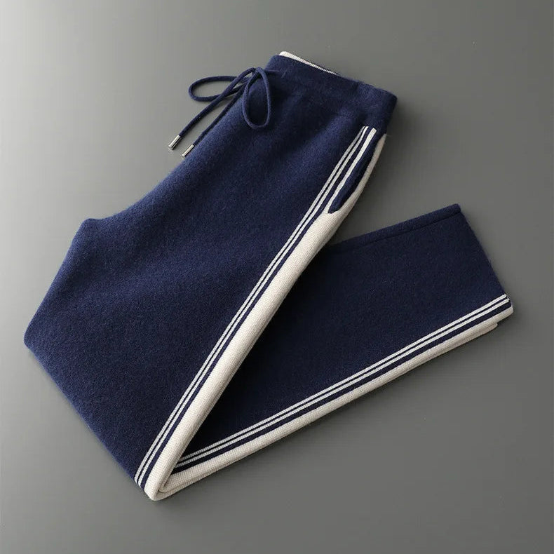 This cashmere-blend knit tracksuit set offers a relaxed, comfortable feel with a clean, coordinated look.
