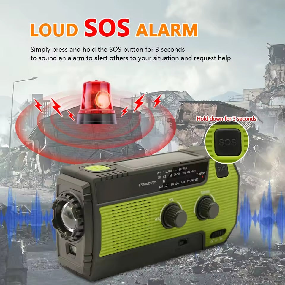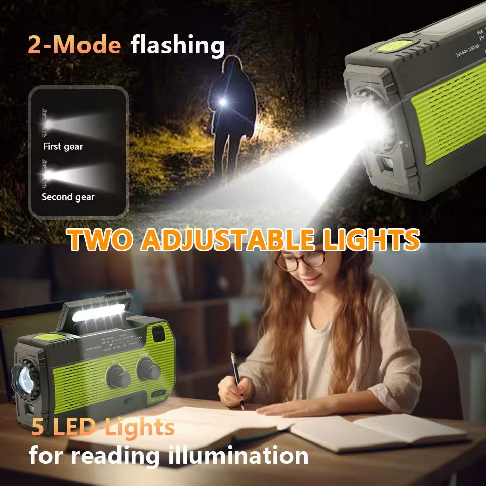 This multi-function emergency radio power bank is designed to keep you informed, illuminated and powered during outdoor activities or unexpected outages. With multiple charging methods, a built-in power bank, bright lighting options and dependable radio reception, it serves as a practical companion for camping, travel, roadside emergencies or home preparedness. Its compact design makes it easy to store and carry wherever you go.