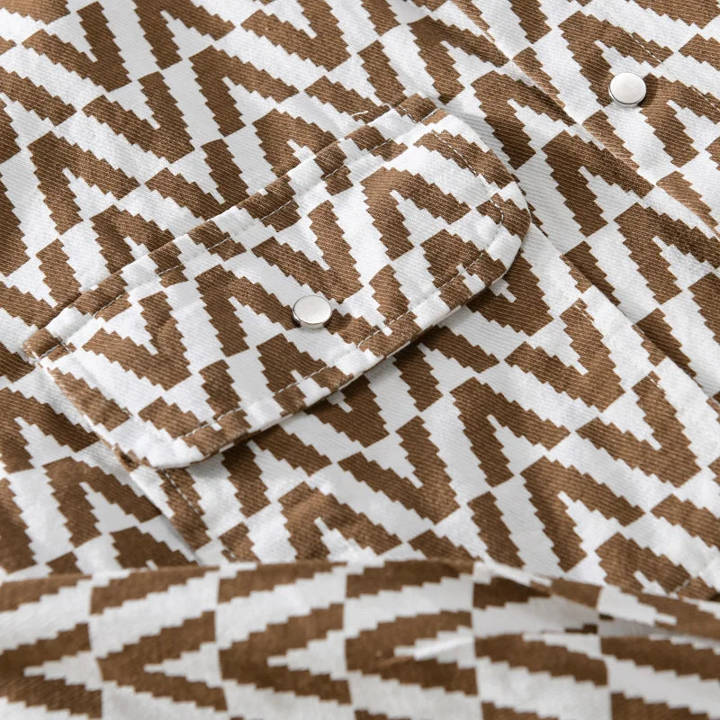 This patterned cotton shirt features a bold geometric design balanced with a lightweight, breathable feel. Its clean silhouette makes it an easy piece to wear for casual days, relaxed outings, or smart-casual styling. A simple way to add colour and pattern to your everyday wardrobe.