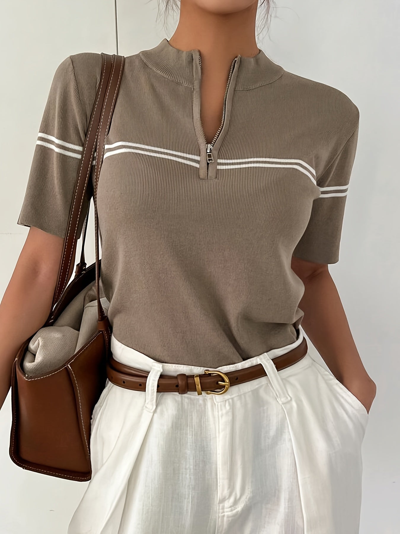 1 × Women’s Half-Zip Short Sleeve Mock Neck Top – Slim Fit