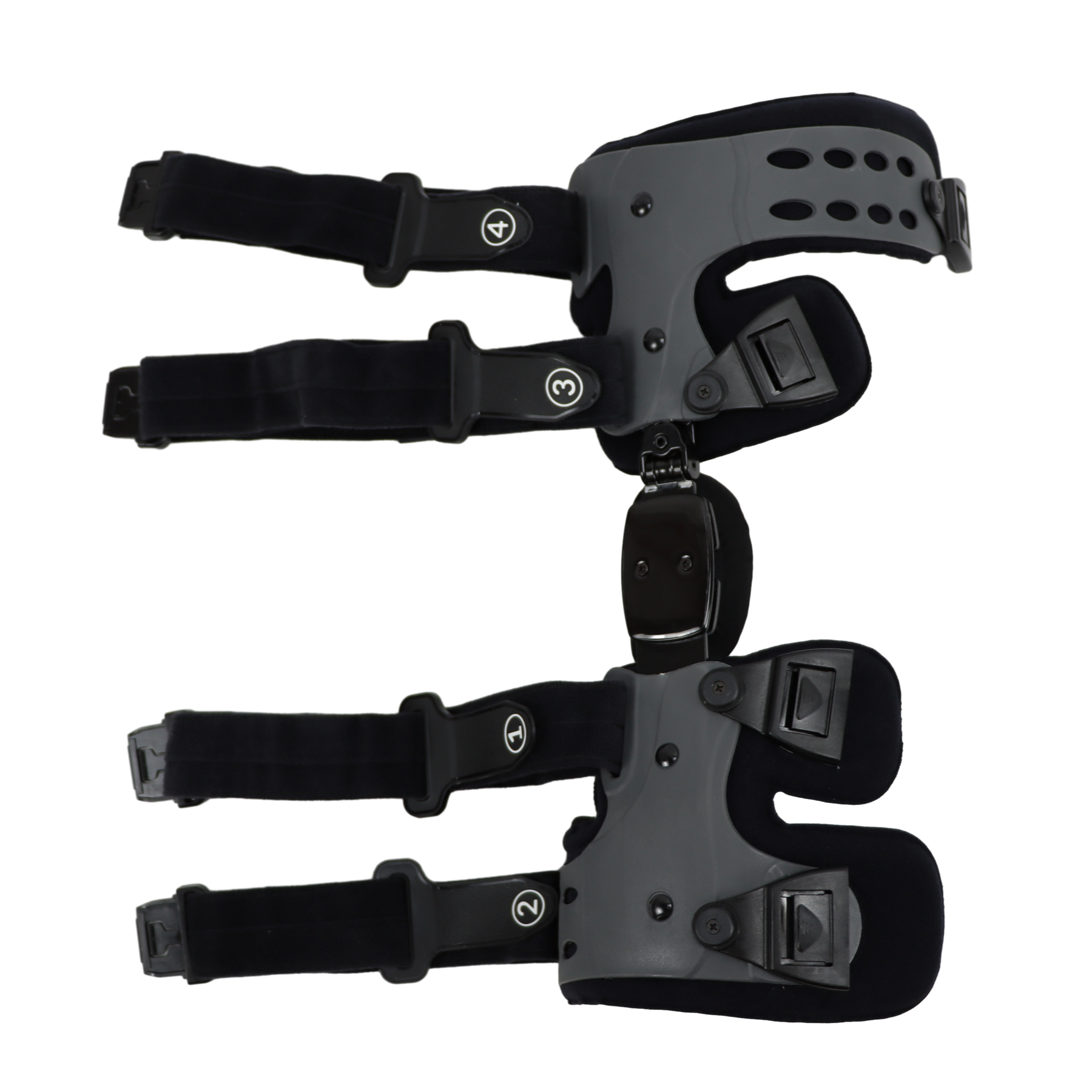 Features: Controlled flexion/extension hinges, quick-release buckles